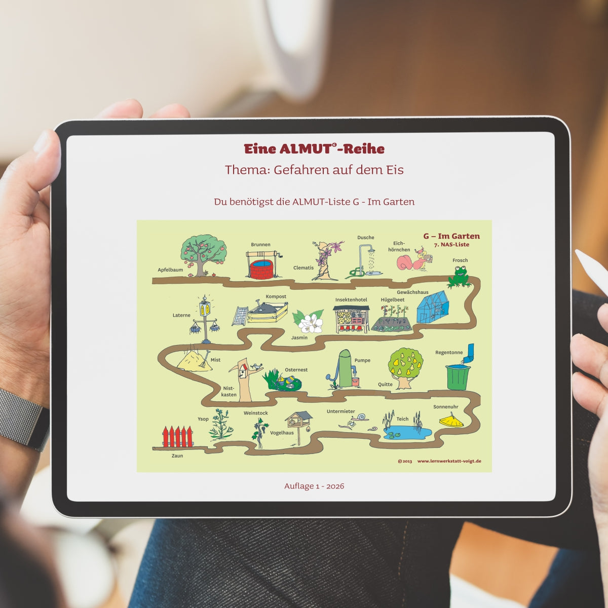 Jede Eisregel wird mit einem Bild verknüpft – entlang einer klaren Lernroute im Garten.