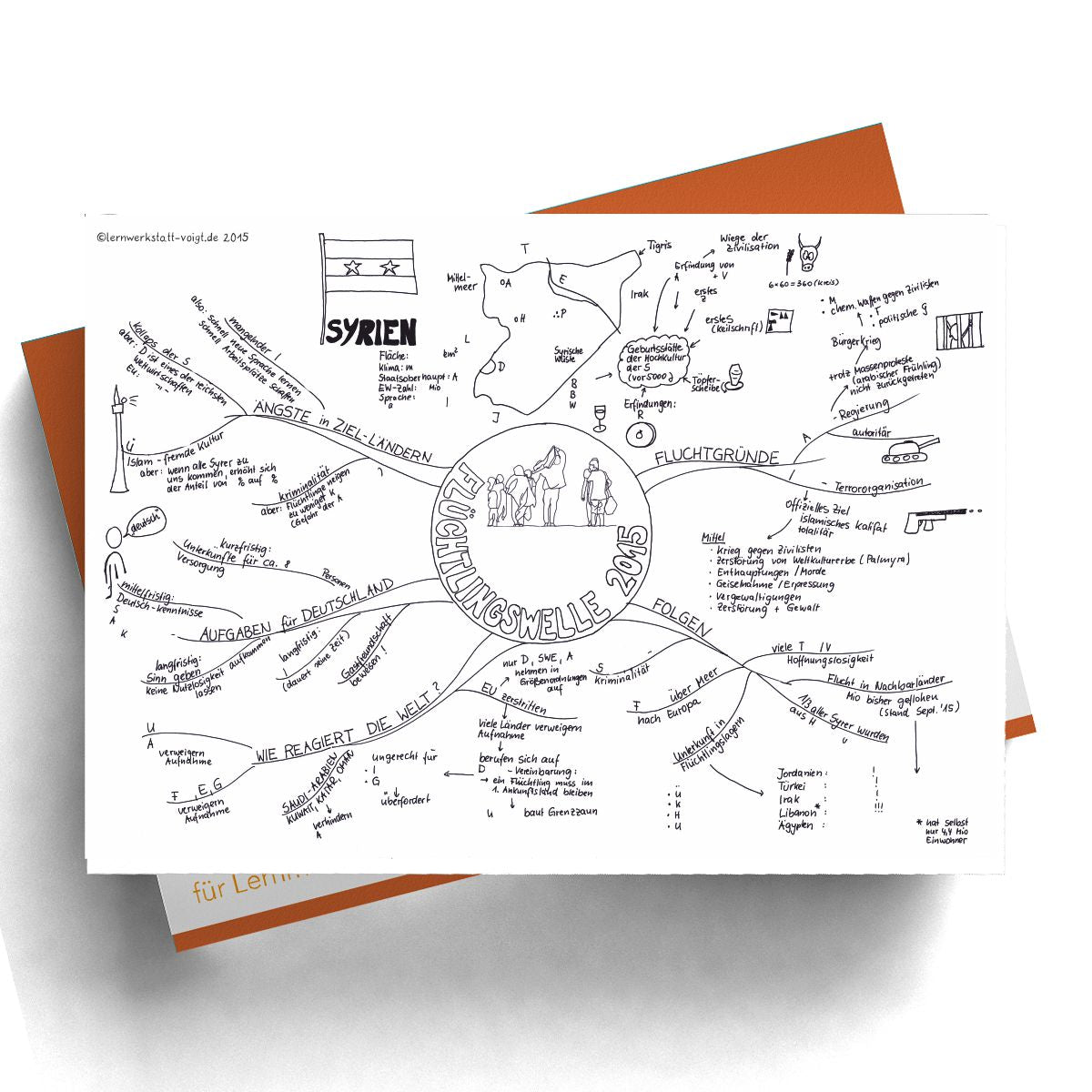 Dieses Mindmap zeigt kompakt und verständlich, warum Menschen fliehen, welche politischen und gesellschaftlichen Auswirkungen die Krise hatte und wie Europa darauf reagierte.